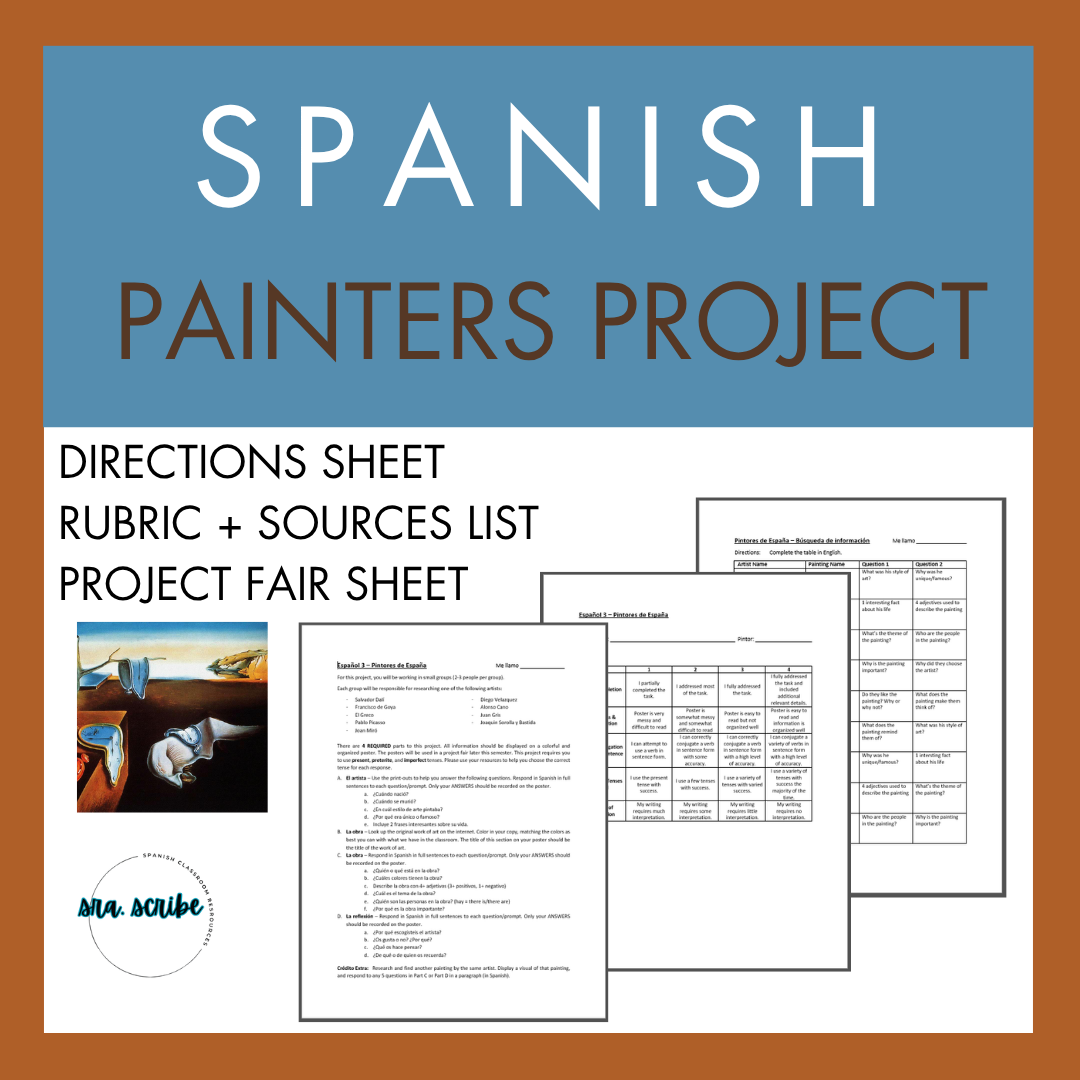 I have used this as part of my Spanish 3 curriculum. Students utilize the present, preterite and imperfect tenses to answer questions about a Spanish artist and one of their paintings. Student product should have 16+ sentences in Spanish.
